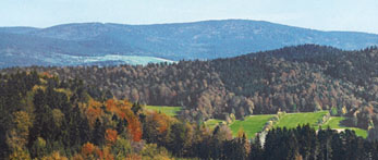 die Berge Rachl 1453 m, Lusen 1373 m und Dreisessel 1312 m. Die